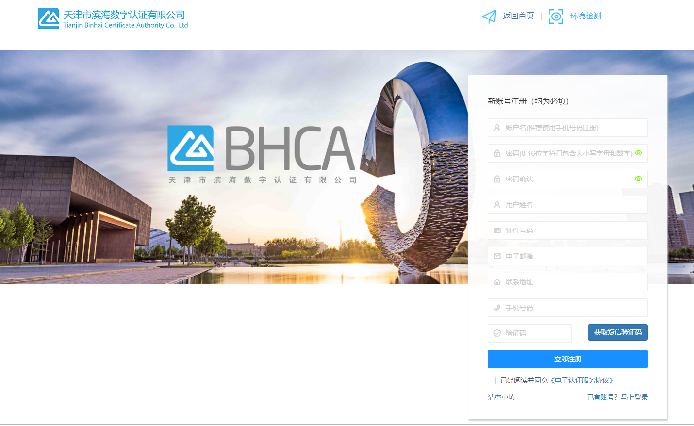 步骤1:浏览器打开系统首页,点击“注册”。如下图: