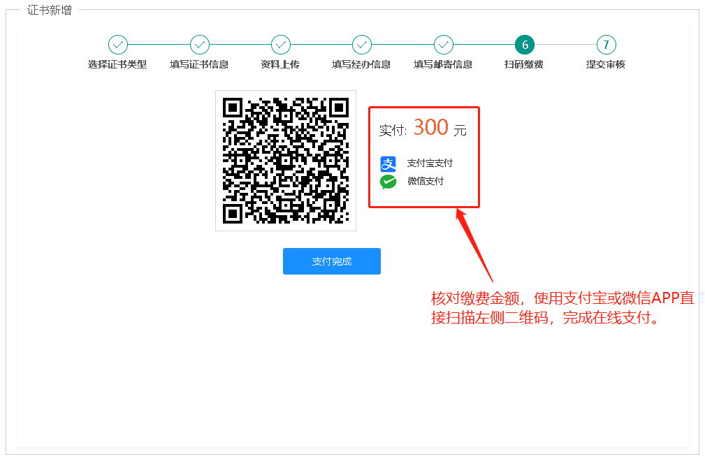 证书新增(介质类型:UKey;收费类型:自助扫码收费)