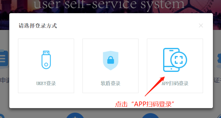 步骤2:选择登录方式,点击“APP扫码登录”,如下图: