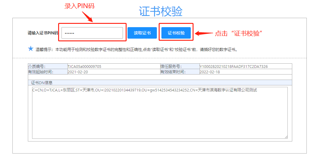 步骤3:录入PIN码,点击“校验证书”。